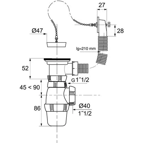 Le set d’évacuation complet de Wirquin convient pour un évier simple avec un diamètre de 50 mm. Le siphon est réglable en hauteur de 131 à 176 mm. Avec bonde, bouchon et trop-plein rectangulaire.