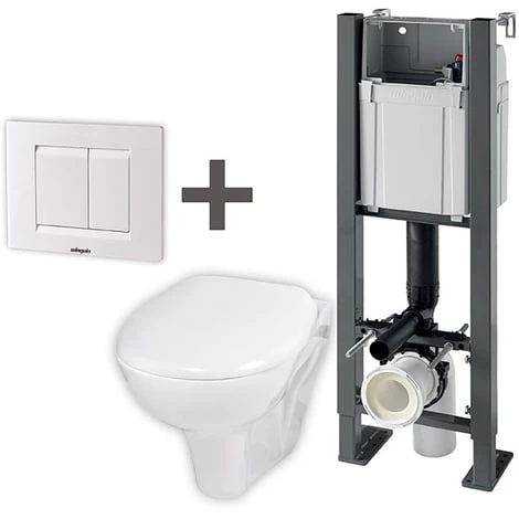 Livré avec : Plaque de commande modèle Essentiel double volume finition blanche, Largeur 208 mm et hauteur 166mm, Cuvette réglable en hauteur, abattant modèle Néon avec charnières indépendantes, antistatique.