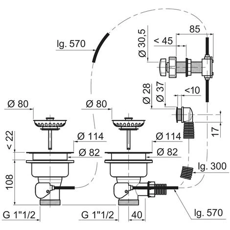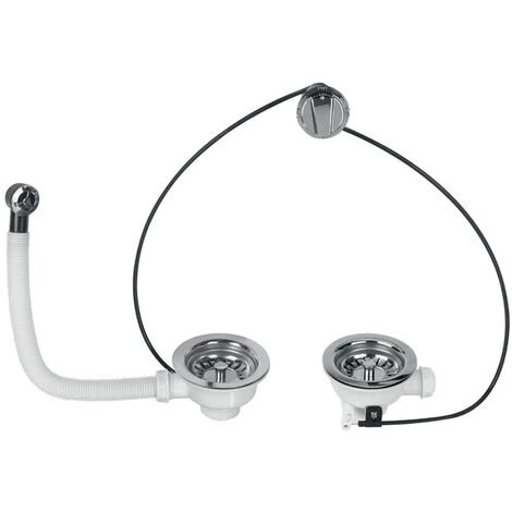 - Bonde d’évier ø90 pour évier ø90 inox, grès ou synthèse 2 bacs avec trop-plein externe