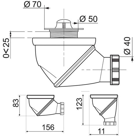 Encombrement sous receveur : 83 mm en montage horizontal, 123 mm en montage vertical