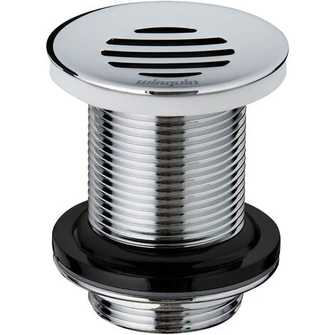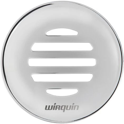 Le bouchon de vidange Wirquin de 75 mm est fabriqué en laiton et présente une grille incurvée avec un motif à rayures.