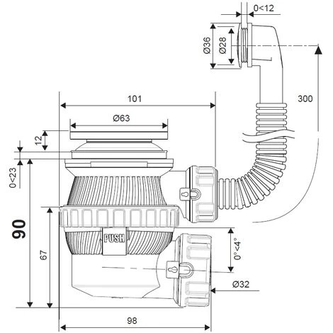 Joint surmoulé pour une fiabilité optimum – Clippage du corp de la bonde. Orientation 360° et inclinaison ±4° . Débit 15 L/mn