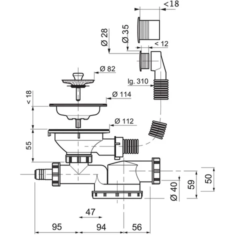 Garde d’eau : 50 mm – Débit : 34,8 L/mn – Encombrement sous évier : 143 mm