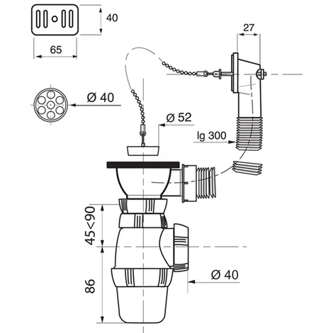 WIRQUIN Bonde De Lavabo Design à écoulement Libre Sans Trop Plein
