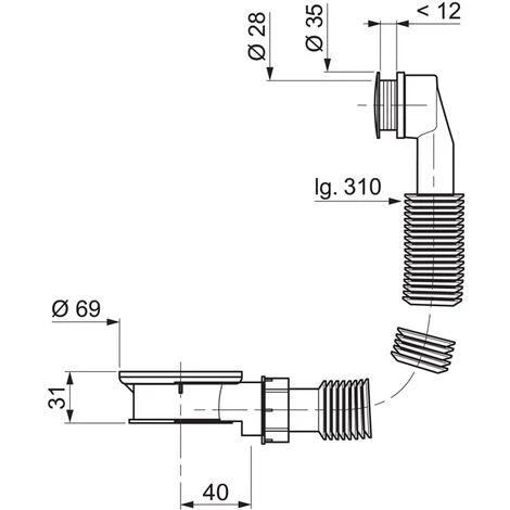 Vidage De Baignoire à Câble Finition ABS Chromé L700mm Wirquin 30720356, Gris