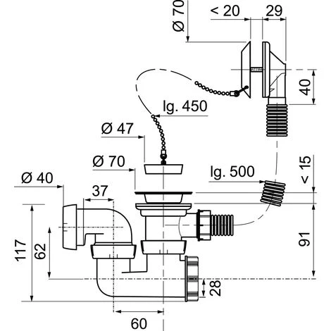 La bonde pour baignoire à bouchon de Wirquin évacue les eaux usées, en ne laissant aucune odeur désagréable dans la maison. Le siphon orientable est muni d’un tuyau de trop-plein souple de 500 mm et la grille de trop-plein est en inox. Le bouchon affiche un diamètre de 47 mm et la chaînette a une longueur de 450 mm.