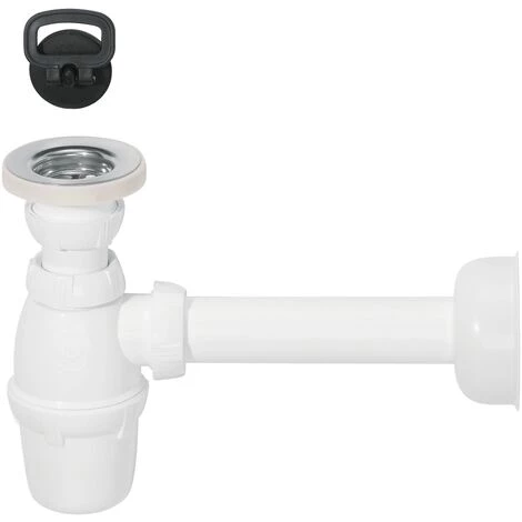 Le siphon de lavabo de Wirquin évacue les eaux usées afin d’éviter les mauvaises odeurs dans la maison. Le siphon est doté d’un bouchon noir avec poignée et est réglable en hauteur. Il est doté d’une entrée 1:1/4, tandis que la sortie a un diamètre de 32 mm (à visser).
