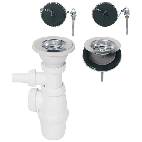 Siphon réglable en hauteur et bondes pour évier 2 bacs communicants Ø60 mm