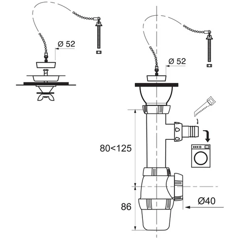 Avec prise machine à laver – Garde d’eau : 50 mm – Débit : 60 L/mn