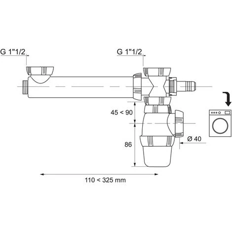 Avec prise machine à laver – Entrée 1″1/2 – Sortie Ø40 mm à visser
