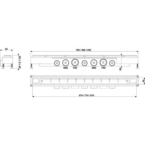 Caniveau douche Venisio Ht 80mm-84L/mn+Grille inox – 800mm
