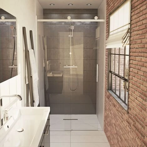 - Le caniveau extra-plat (seulement 50 mm sous chape) est idéale pour la réalisation de douche a l’italienne en rénovation.