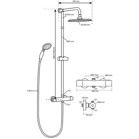 Equipé d’un robinet mitigeur thermostatique moderne, vous optez pour un ensemble complet prêt à installer.