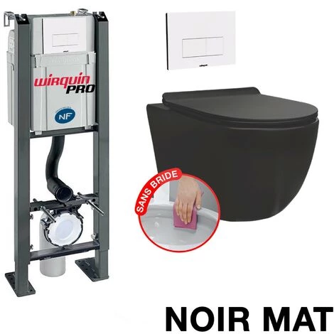 Pack Complet WC Sans Bride Bati Autoportant + Cuvette + Plaque Blanche modele CHRONO WC suspendu compact en céramique blanche au design moderne et contemporain.