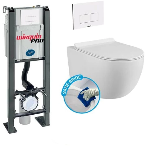 Pack Complet WC Sans Bride Bati Autoportant + Cuvette + Plaque Blanche modele DESIGN WC suspendu compact en céramique blanche au design moderne et contemporain.