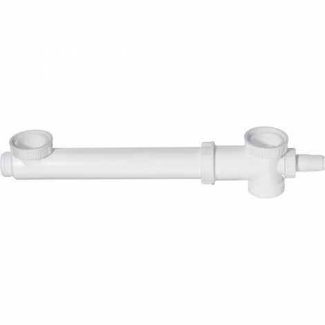 Tubulure de raccordement avec prise machine à laver pour évier 2 bacs. Entraxe réglable de 160 à 280 mm. Prise machine à laver. Entrée 1″1/2 + joints plats. Sortie filetée 1″1/2.