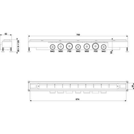 Express’Eau, solution complète pour douche à l’italienne. Faible encombrement (80 mm) qui ne nécessite pas une importante profondeur de décaissement et facilite la pose d’une douche à l’italienne. Idéal en rénovation. Facilité d’entretien : siphon accessible par le dessus grâce à son godet amovible. Grille design inox brossé, dimensions 665 x 43 mm. Débit ultra rapide. Livré avec une bavette anti-fissuration. Longueur : 700 mm. Garde d’eau de 50 mm . DVD de mise en oeuvre fourni.